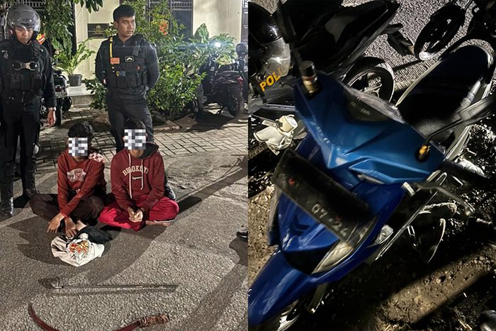 “Sekitar pukul 03.10 WIB, personel Dalmas yang sedang berpatroli melihat segerombolan anak keluar dari arah Kampung Budaya sambil membawa senjata tajam. Petugas langsung melakukan pengejaran dan berhasil mengamankan satu kendaraan bermotor yang ditumpangi tiga orang,” terang Ipda Cep Wildan.