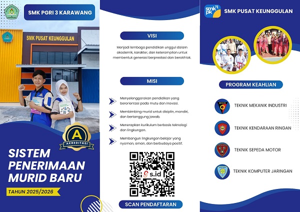Sebagai SMK Pusat Keunggulan, SMK PGRI 3 Karawang tidak hanya fokus pada penguatan keterampilan teknis, tetapi juga membangun jejaring luas dengan dunia kerja, sehingga para lulusannya memiliki peluang besar untuk langsung diserap oleh industri maupun membuka usaha mandiri.