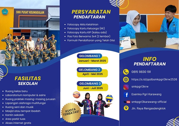 Info Rengasdengklok – Sebagai salah satu Sekolah Menengah Kejuruan (SMK) terkemuka di Kabupaten Karawang, SMK PGRI 3 Karawang terus menunjukkan komitmennya dalam mencetak lulusan yang unggul, berkarakter, dan siap bersaing di dunia usaha maupun dunia industri.